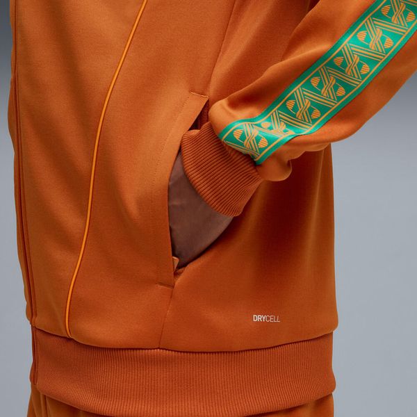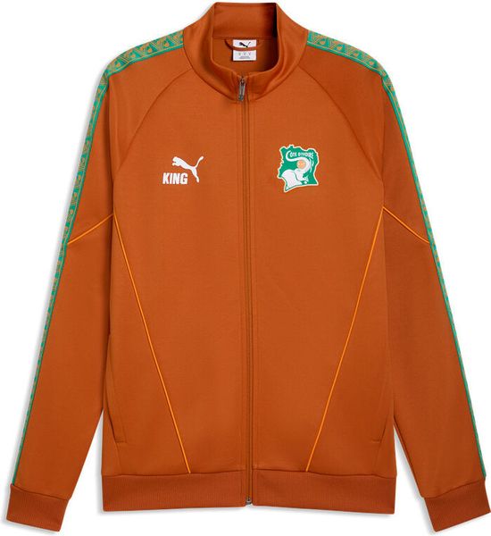 "The FIF King Anthem Jacket by Puma is the perfect choice for men who want to combine style and functionality in one piece of clothing. This jacket, inspired by the KING Anthem Collection, combines retrovibes with a modern twist and features striking vintagedetails. The design honors the legacy of the Ivory Coast and gives you the opportunity to show your pride and loyalty."