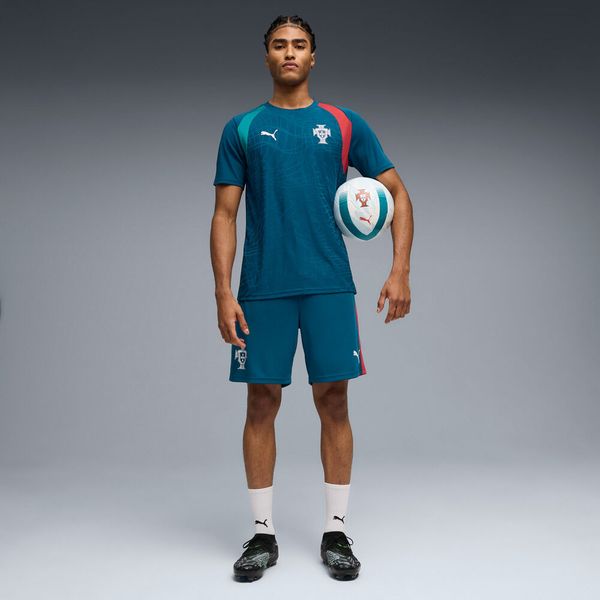 "Experience training at the highest level with the FPF Training Shorts from Puma, specially designed for men. These shorts combine advanced materials with a precise slim-fit fit that supports your mobility while providing a sporty-elegant look. The main material made from double-face jacquard not only offers comfort, but is also made from 100% recycled material, which makes an important contribution to sustainability. The elasticated waistband with drawstring ensures a secure fit and flexibility during training."