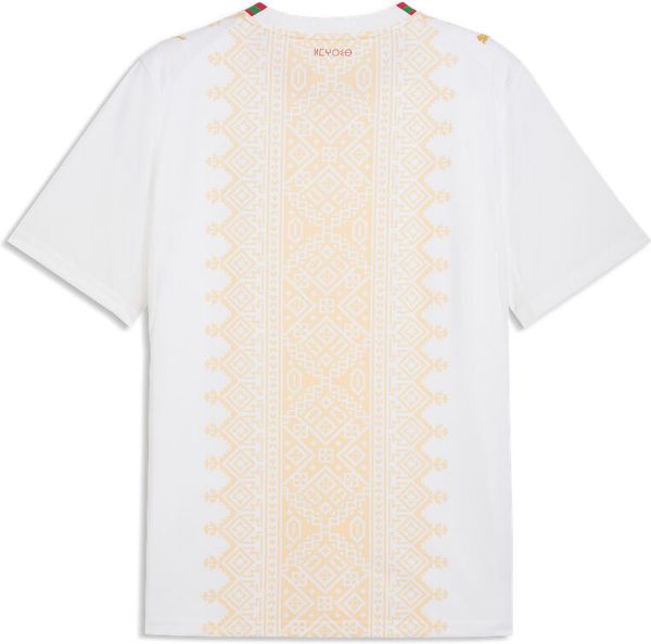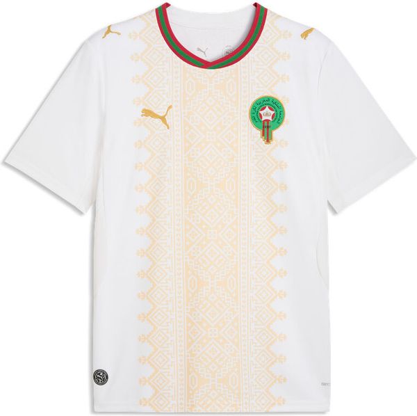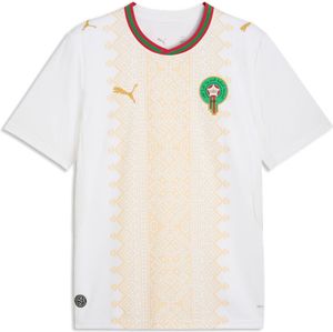 "Experience Moroccan craftsmanship at its finest with the Frmf Away Jersey Replica from Puma. This jersey impresses with its elegant design in royal white and gold, inspired by the traditional embroidery of the Atlas Lions. It is not only an eye-catcher on the pitch, but thanks to its casual silhouette it is also ideal for everyday wear and leisure activities."