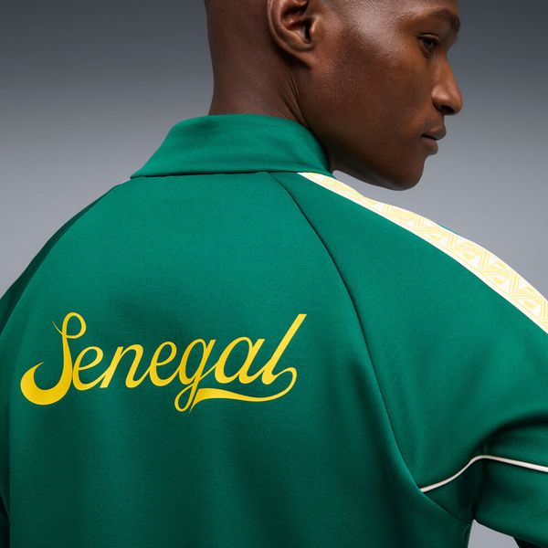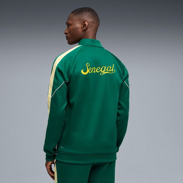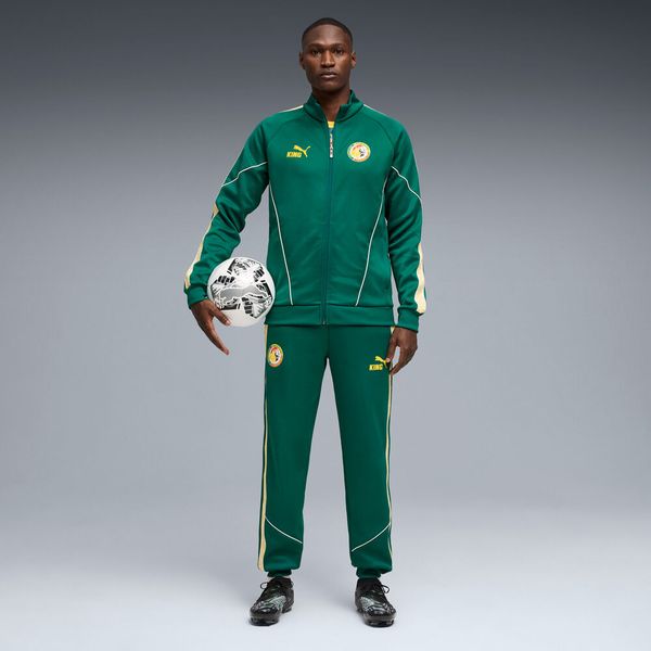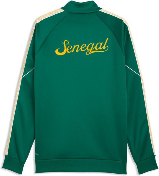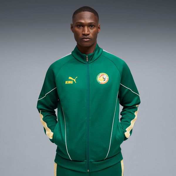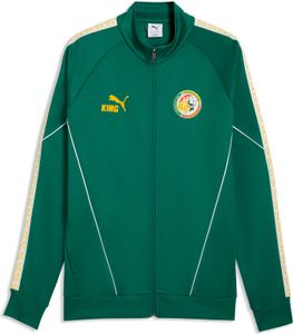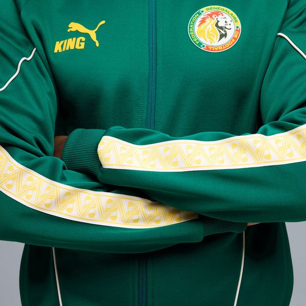"The FSF King Anthem Jacket by Puma is a stylish men's jacket that combines retrovibes with modern design. This anthem jacket is not only a fashion statement, but also an expression of loyalty as it serves as the official casual wear of the Senegalese national team. Made from high-quality wool and at least 50% recycled materials, the jacket not only offers a sustainable approach, but also a comfortable feel."