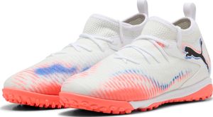 "Unleash your creativity on the pitch with the Future 8 Match TT + Mid Jr from Puma. Designed specifically for fitness and training, these shoes offer a great fit and comfort thanks to their lightweight and soft mesh upper made from at least 30% recycled materials. The elastic knitted upper and mid-height construction provide additional support and stability, while the support tape over the midfoot improves grip. The textured mesh zones offer optimal grip and ball control, so you stay in control of the game at all times."