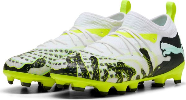 "Experience the ultimate playing experience with the Future 9 Match Creativity Fg/Ag Jr soccer shoes from Puma. These shoes are specially designed for young playmakers who want to use their agility to create decisive moments on the pitch. The upper is made from at least 30% recycled materials and combines sustainability with performance. Thanks to the mesh upper and elastic shaft, the shoes offer a flexible and supportive fit that adapts perfectly to the shape of the foot while protecting the environment."