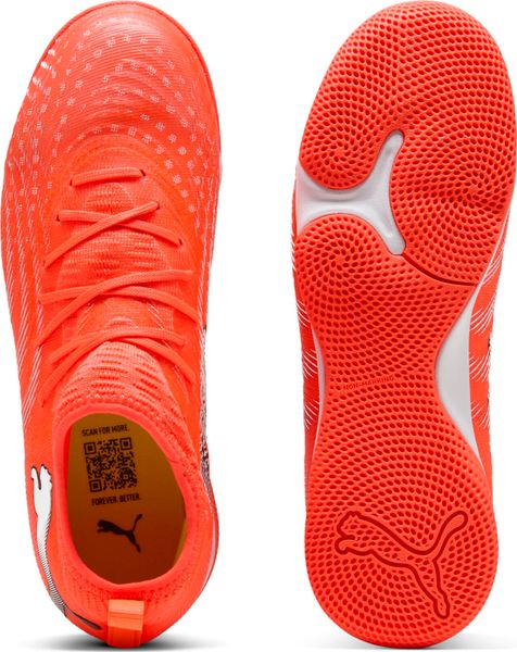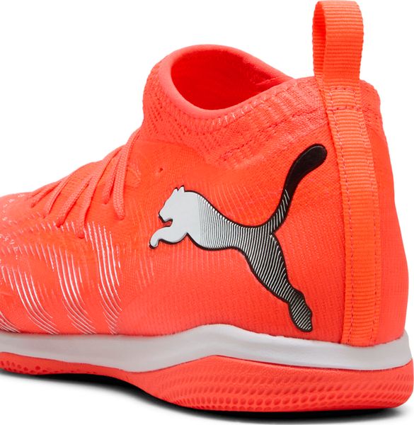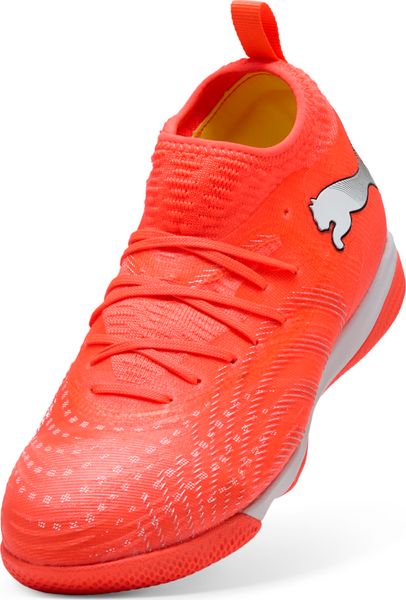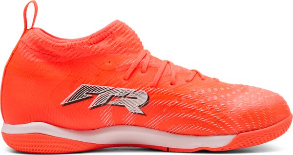 "The Future 9 Match IT + Mid Jr from Puma are the perfect choice for young athletes who want to improve their fitness and training skills. These shoes not only offer style, but also functionality by being made from at least 30% recycled materials, thus contributing to sustainability. The soft, lightweight mesh upper with an elastic knitted shaft and mid-height construction ensures a flexible, secure and supportive fit that adapts perfectly to the foot's movements."