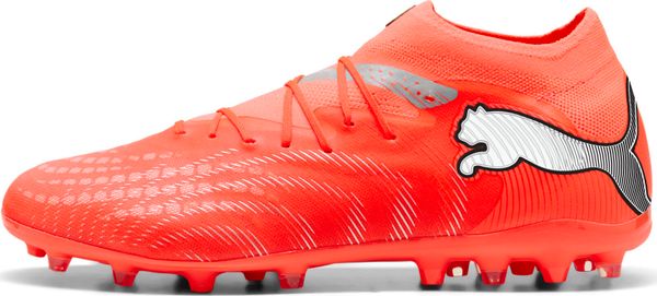 "Experience the future of football with the Future 9 Pro MG from Puma. These innovative soccer shoes offer a fit that adapts to your foot like a second skin, thanks to the soft lining and multi-textured knit. The PWRTAPE at the midfoot ensures a secure fit and additional stability so that you can concentrate fully on your game without sacrificing mobility."