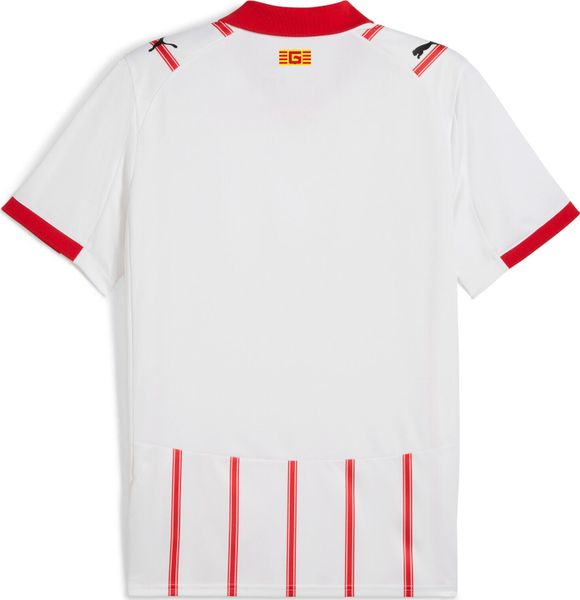"The main material, a high-quality doublefacejacquard, ensures a regular fit and offers optimum comfort. The regular cut and short sleeves make the jersey perfect for any occasion. Club and PUMA branding details complete the design and make this jersey a must-have for every fan of Girona FC."