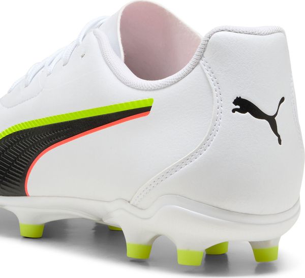 "The Puma King 20 Play FG/AG football boots are the perfect choice for players who want to perform on both firm ground and artificial turf. These shoes combine timeless design with modern technology to give you an unparalleled playing experience. Equipped with a lightweight insole, they not only guarantee exceptional comfort, but also excellent breathability so that your feet stay cool even during intense games."