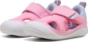 "The Kitten Summer V Inf sneakers from Puma are the ideal companion for little explorers on warm days. These shoes combine comfort and sustainability, as at least 20% of their upper material and at least 10% of the lower part is made from recycled materials. The rounded toe and Velcro fastening make them easy to put on and take off, while the regular width offers a comfortable fit for little feet."