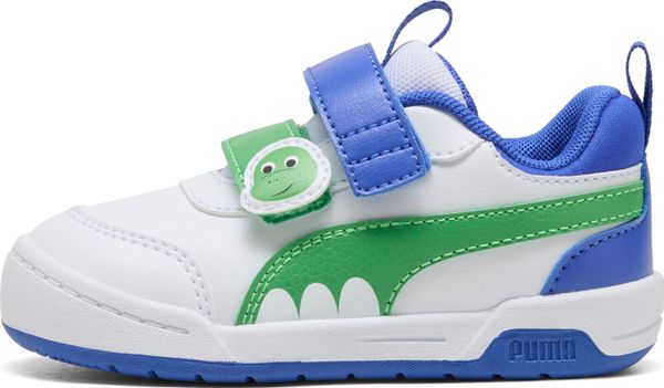 "The Multiflex 2 Dino V Inf from Puma is the perfect companion for little dinosaurs-fans. These sneakers combine playful dinosaur graphics on the straps with the iconic PUMA Formstrip, which stands out with special dinosaur details. The design not only appeals to children, but is also functional. The Velcro fastening makes them easy to put on and take off, ideal for babies and toddlers aged 0 to 4 years old."