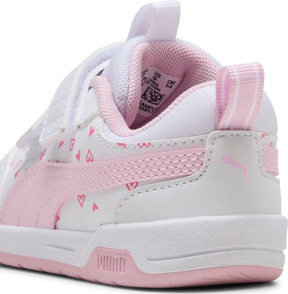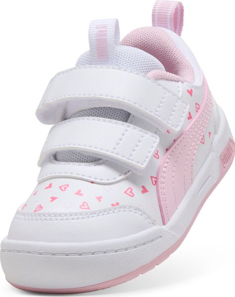"The Multiflex 2 Hearty V Inf from Puma is the ideal companion for your little one's first steps. These cute sneakers are not only stylish with an adorable heartprint, but also environmentally friendly, as the upper is made from at least 30% recycled materials. The lower part of the shoes contains at least 10% recycled materials, making them a sustainable choice for eco-conscious parents."