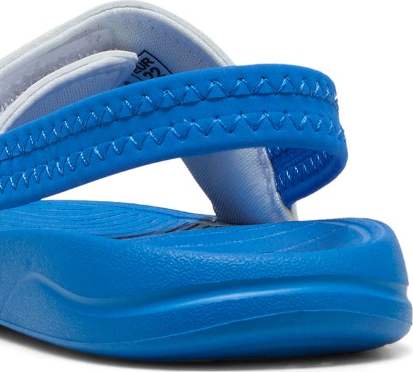"The Popcat 20 Backstrap AC Inf sandals from Puma are the perfect choice for little explorers. These sandals are easy to put on and take off thanks to the practical Velcro fastening and padded synthetic strap. The additional heel strap provides optimum support, while the molded footbed made of IMEVA material ensures outstanding comfort. The lightweight IMEVAmidsole offers a super-comfortable fit, ideal for the sensitive feet of babies and toddlers"