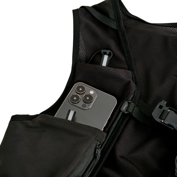 "Lightweight, sustainable running vest with practical pockets and reflective details for optimum comfort and safety."