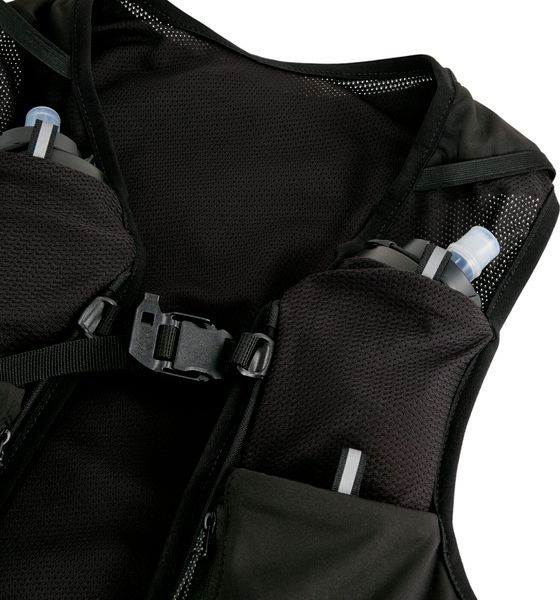 "With a variety of well thought-out pockets, including front water bottle pockets, slide-in pockets, zippered pockets, a back pocket and a tunnel pocket, the vest offers enough space for all the important items you need on your run. The reflective design details ensure that you remain clearly visible even in poor light conditions."