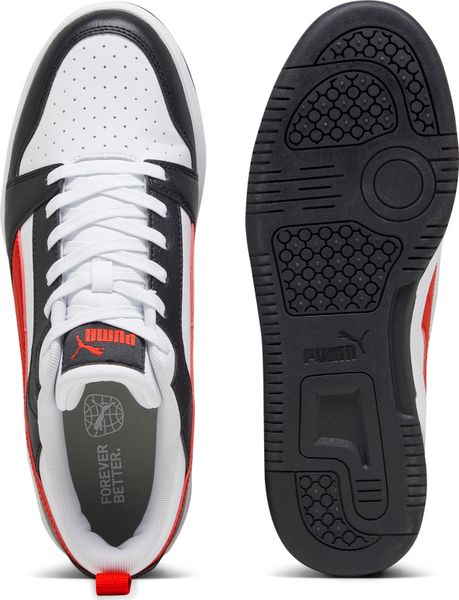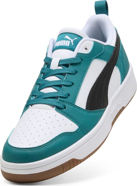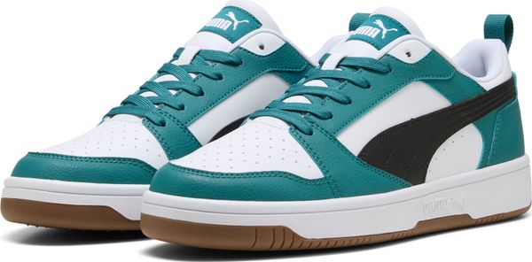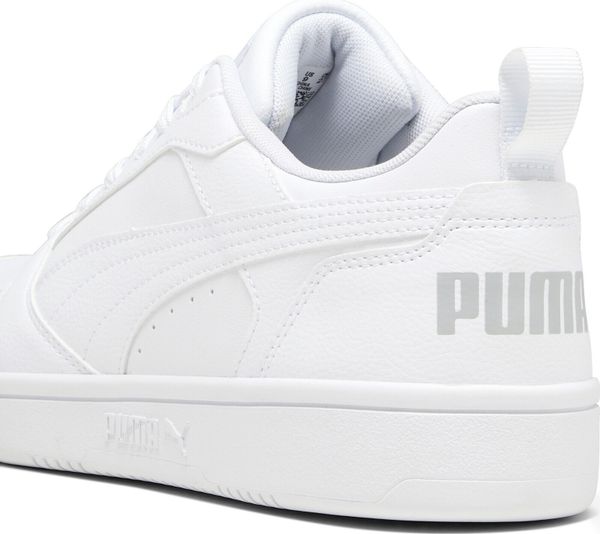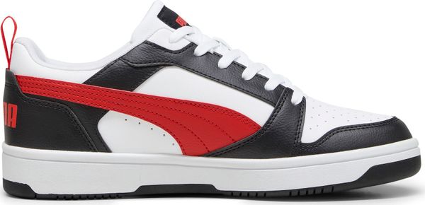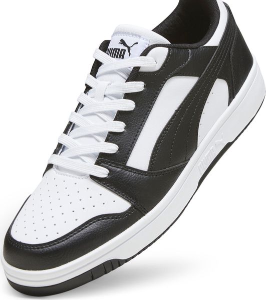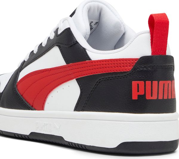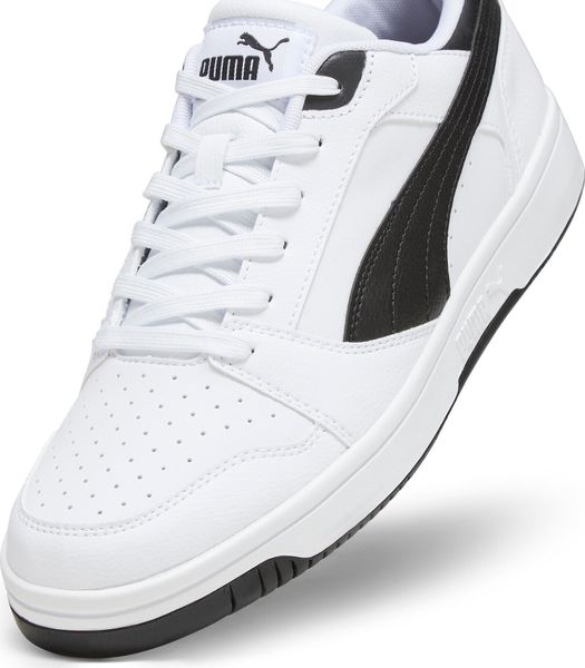"The Rebound v6 Low impresses with its soft leather upper and striking PUMA branding with eye-catching color blocking. The SOFTFOAM+ comfortinsole with extra-thick heel provides soft cushioning that makes your steps comfortable all day long. The perforated toe section and the double-layered eyelet strip not only give the shoe a sporty look, but also additional breathability and support."