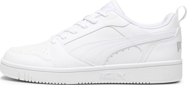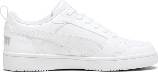 "With a flat heel, regular fit and classic lace-up closure, these shoes offer a secure and comfortable fit. The PUMAbranding and the PUMAwordmark on the heel complete the design and give the shoes an unmistakable look. The combination of leather, textile lining and a robust rubber outsole makes the Rebound v6 Low a durable and versatile companion for every occasion"