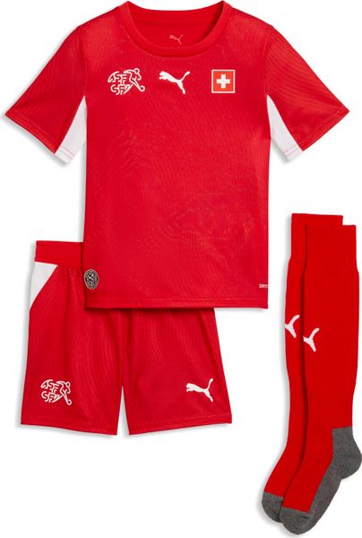"The SFV Home Minikit from Puma is the perfect choice for young fans of the Swiss national team who want to show their passion on and off the pitch. Specially designed for children and teenagers aged 8 to 16, this mini kit features team colors and signature details that reflect their enthusiasm for the game."