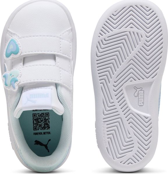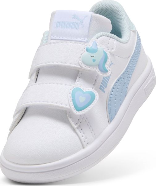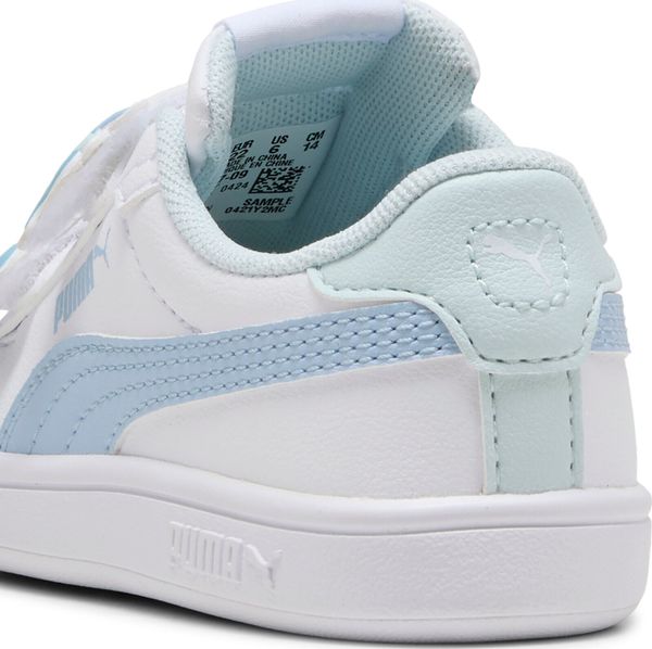 "The Smash 3.0 Badges V Inf from Puma are the ideal choice for little explorers. These shoes combine stylish design with sustainable materials, as both the upper and the lower part are largely made from recycled materials. With at least 20% recycled material in the upper and at least 10% in the lower part, these shoes make a contribution to environmental protection without sacrificing quality and comfort"