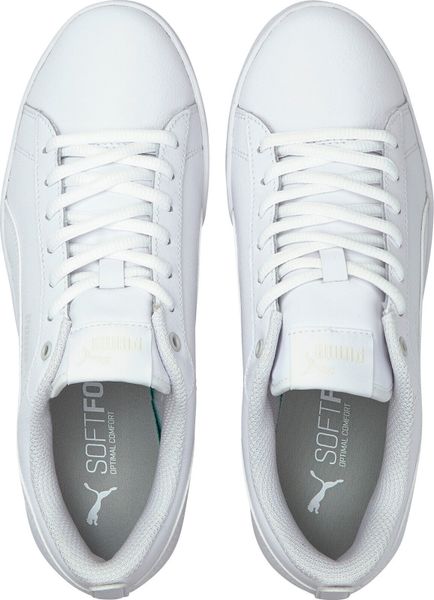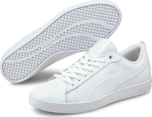"A special highlight of the Smash Wns v2 L is the colorful tongue and the practical pull tab on the heel, which makes it easier to put on and take off. The rubber outsole ensures a secure grip on a variety of surfaces, while the iconic PUMA Formstrip on the side and the PUMA Wordmark logo on the side quarter round off the classic look. Perfect for anyone who wants to make a sporty appearance off the tennis court too."