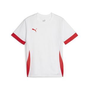 "The jersey impresses with its modern and functional cut. The regular fit offers freedom of movement, while the round neckline and short sleeves ensure a classic look. The interlock fabric feels pleasant against the skin and is durable at the same time. Puma's iconic Cat logo is proudly emblazoned on the right chest, while the back is made entirely of mesh to ensure additional breathability."