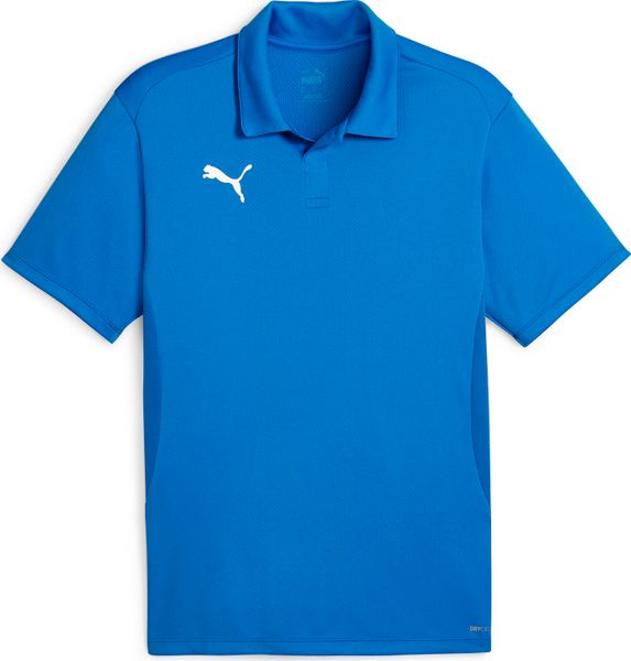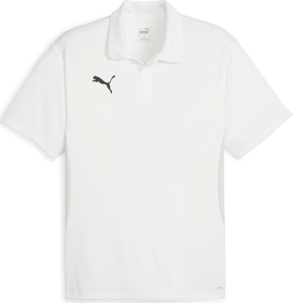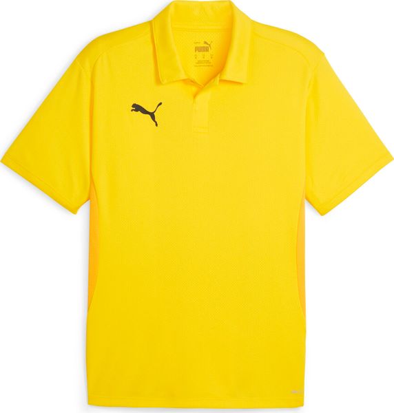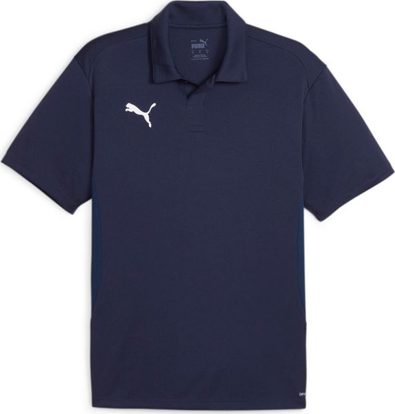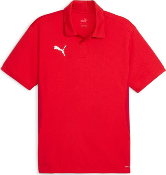 "The polo shirt is not only a functional training top, but also a stylish companion for leisure time. With the striking PUMA Cat logo on the right chest, it embodies sporty elegance and sets fashionable accents. Whether you're dribbling on the pitch or relaxing with friends, the Teamgoal polo offers you the right support at all levels."