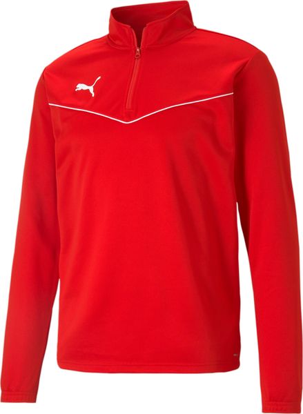 "Experience the perfect combination of modern design and high-performance materials with the Teamrise 1/4 Zip Top from Puma. This football shirt from the teamRISE collection has been developed to meet the high demands at every level. The regular fit ensures a comfortable fit, while the stand-up collar with quarter-length zipper provides additional comfort and flexibility. The elasticated waistband offers optimum freedom of movement, while the V-fu00f6rm piping in contrasting colors on the chest adds a stylish accent"