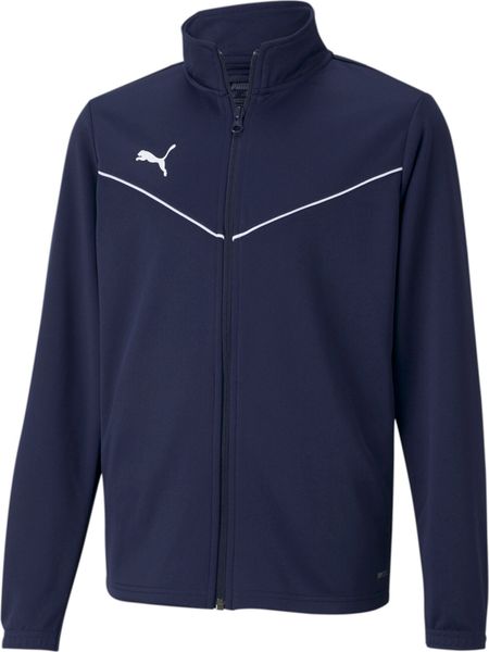 "A special highlight of the jacket is the V-fu00f6rmige piping in contrasting colors on the chest, which gives the jacket a dynamic look. The PUMA Cat logo as a thermal transfer print on the right chest rounds off the sporty design. The elasticated waistband ensures a perfect fit so that the jacket stays in place even during intensive training sessions. Made from 100% polyester, this jacket is not only lightweight, but also easy-care and durableu2013 perfect for everyday use during football training or other fitness activitiesu00e4ten."