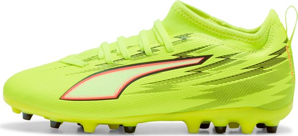 "Experience unparalleled performance and comfort with the Ultra 6 Match MG Jr soccer shoes from Puma. These innovative shoes are made from at least 30% recycled materials, contributing to a more sustainable world. The lightweight mesh upper and stable support frame offer an excellent fit that has been specially developed for normal to narrow feet. Thanks to the GripControl coating, you keep control of the ball no matter how fast the game gets"