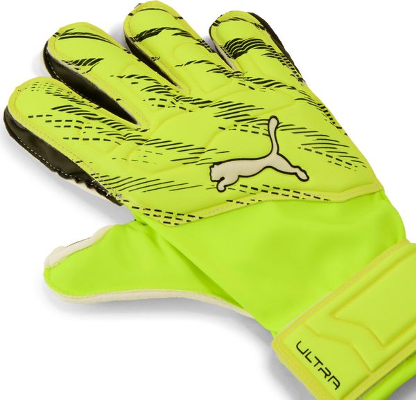 "Experience ultimate protection and comfort in goal with the Ultra Match Protect Jr RC goalkeeper gloves from Puma. These gloves have been specially developed for young goalkeepers and offer outstanding grip and impressive durability thanks to the 3 mm thick Multi-Grip-Latex palmsu00e4. The regular cut and relaxed fit ensure optimum ball control and a comfortable fit, while the main part made of lightweight PUmaterial offers additional comfort."