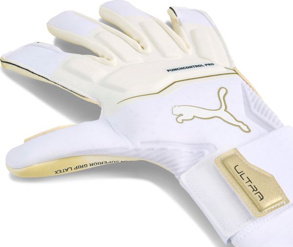 "Discover the perfection of goalkeeper gloves with the Ultra Ultimate Hybrid from Puma. These gloves offer outstanding ball control and cushioning thanks to the innovative PUNCHCONTROL PRO technology. The integrated Punch-pads with Grip-finish in the finger- and knuckle area enable precise parades and maximum mobility. Whether in rain or sunshine, the 4 mm thick latex palms guarantee fantastic grip and full control over the ball."