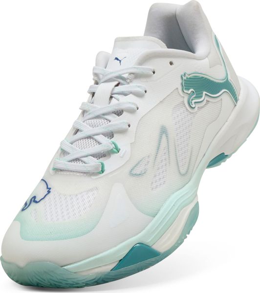 "Take your fitness and training to the next level with the Vantage Nitro W+ Game On handball shoes from Puma. Specially designed for women, these shoes offer a perfect fit and support your game with a molded foot arch, less volume and a narrower heel. Thanks to the integrated cage, the midfoot is optimally supported, which ensures stability and multidirectional reactivity. The Fast Rebound Foam technology guarantees outstanding cushioning and energy return, so you can get more performance out of every step."