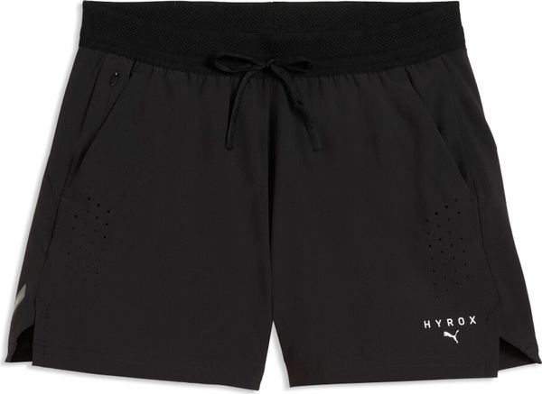 "Designed for fitnessenthusiasts and competitors, the Puma X Hyrox Dryelite Woven Shorts offer the ideal combination of functionalityu00e4t and comfort. These shorts are made from at least 50% recycled materials and help to protect the environment. Equipped with the innovative dryCELLtechnology, moisture is effectively wicked away from your skin so that you can enjoy a dry and comfortable feel even during intensive training sessions. The elastic waistband and regular fit ensure an optimal fit and freedom of movement, while the shorts end comfortably above the knee. The special PUMA x HYROX branding underlines the sporty look and makes them the perfect companion for your next fitnessadventure."