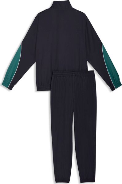 "The twill main material gives the suit a robust structure, while the stand-up collar and elasticated cuffs of the jacket ensure that you are protected from the wind. The drawstring trousers adapt perfectly to your movements and offer optimum comfort thanks to the mid-rise waistband and regular fit. Practical side pockets offer additional storage space for small items. The full-length zipper makes the jacket easy to put on and take off, which makes the suit particularly suitable for everyday wear. This suit is a must-have for anyone looking for classic PUMA energy that is made for movement."