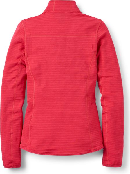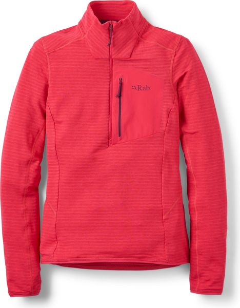"The Ascendor Light Pull-on Wmns by Rab is the perfect choice for women who want to feel comfortable when climbing, on expeditions or during mountaineering and alpine tours. This elastic mid-layer combines thermal insulation and breathability thanks to the innovative Thermicu2122 S fabric, which consists of alternating strips of low and high pile fleece. This ensures optimum temperature regulation with minimal bulk and weight. The long back of the sweater protects your hips and keeps the heat effectively locked in, while elasticated waistbands and hem provide additional protection."