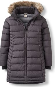"Warm women's parka with recycled down, ideal for cold winter days and versatile outdoor activities."