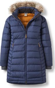 "Warm women's parka with recycled down, ideal for cold winter days and versatile outdoor activities."