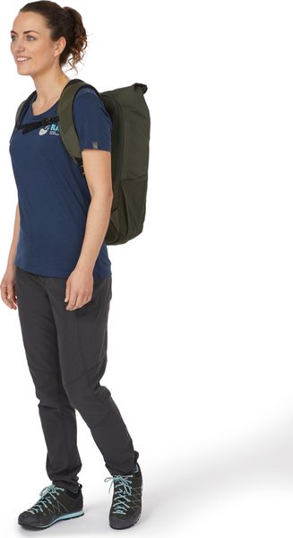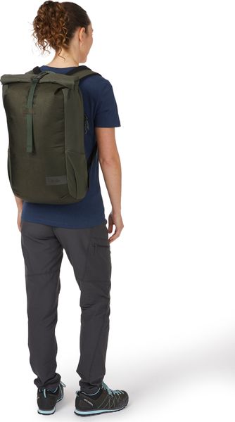 "The Depot 18 backpack from Rab is the ideal companion for everyday urban life, work and travel. With a volume of 18 liters, it offers enough space for all your daily needs. The backpack impresses with its well thought-out features, such as a padded laptop compartment that securely stores laptops up to 15 inches and versatile organizer compartments. Thanks to the roll-top closure with buckle, the contents remain safe and dry, supported by the robust and waterproof nylon material."