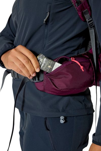 - "Even an extra layer can be stowed in the front in no time at all, and there is space for a water bottle in the side mesh pockets."