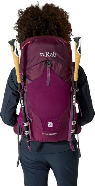 "The Exion 35 ND from Rab is the ideal backpack for women who like to go on longer trekkingand hiking tours. With a volume of 35 liters, it offers enough space for all your equipment, while the V-TRAXu2122 carrying system with easily adjustable Velcro fastening system ensures a snug fit. The wrap-around harness construction ensures increased comfort and the molded hip belt supports a stable fit that can be adjusted while walking."