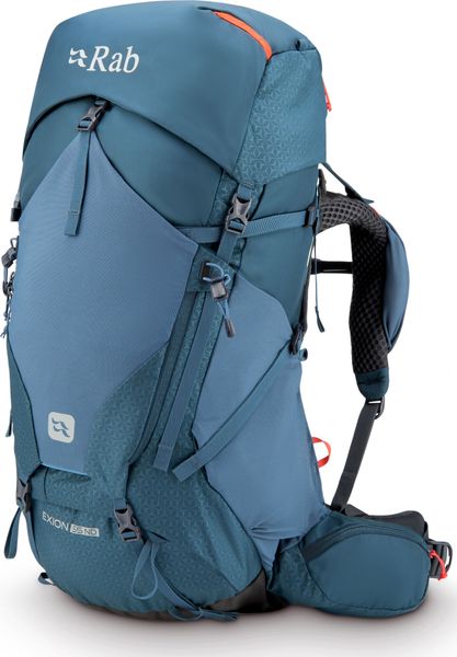 "The Exion 55 ND from Rab is the ideal companion for women who go on extended trekking tours or longer hiking trips. With a generous volume of 55 liters, this backpack offers enough space for all your equipment and is specially tailored to the needs of women. The backpack impresses with its V-TRAXu2122 carrying system, which ensures easy adjustment and a snug fit thanks to an easily adjustable Velcro fastening systemu00e4. The body-enveloping, pre-shaped harness construction ensures increased comfort and optimum body contact, even when the backpack is full."
