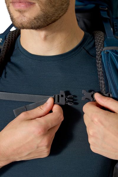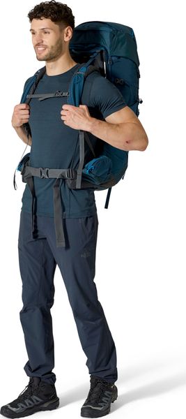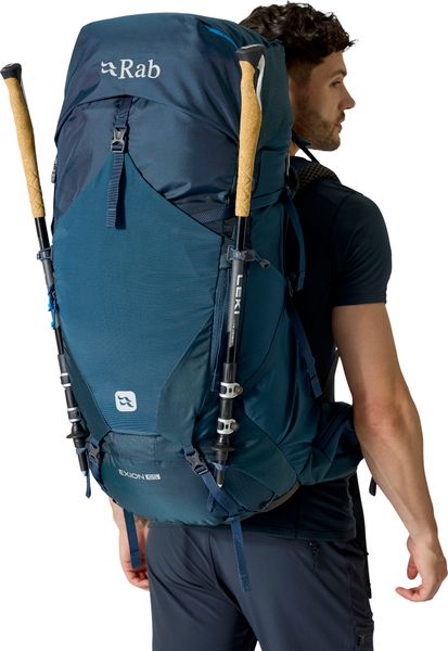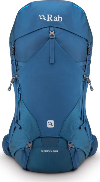 "The Exion 65 from Rab is the ideal companion for anyone who doesn't want to compromise on comfort and functionality on long hikes or multi-day tours. With a generous volume of 65 liters and an expandable lid that offers an additional 5 liters of storage space, this backpack is perfect for anyone who needs to take a lot of equipment with them. The innovative V-TRAXu2122 carrying system with easily adjustable Velcro fastener system ensures that the backpack can be optimally and individually adjusted. The body-hugging, pre-shaped harness construction ensures continuous contact with the body and significantly increases comfort."