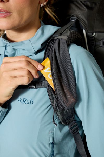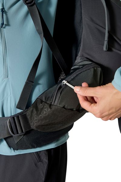 - "Stow an extra layer of clothing in the practical front pocket; the hip belt pockets and carrier pockets offer storage space for on the go."