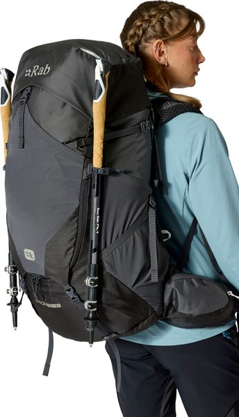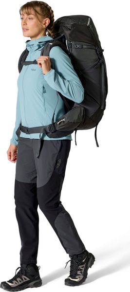 "The Exion 65 ND from Rab is the ideal companion for women who go on long-distance or multi-day hikes. With a backpack volume of 65 liters, it offers enough space for all your equipment. The V-TRAXu2122 carrying system with an easily adjustable Velcro fastener ensures a snug fit and increased carrying comfort. The hip belt can be adjusted while walking to ensure a stable fit. Thanks to the shaped lumbar cushion and the supportive hip belt, you will experience maximum comfort even on long days"