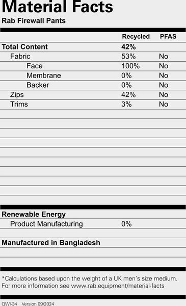 "These pants are not only functional, but also environmentally friendly, as they are equipped with a fluorocarbon-free DWRcoating. Whether you're setting off on a challenging alpine tour or a longer hike, the Firewall Pants from Rab are the ideal addition to your outdoorexcursion."