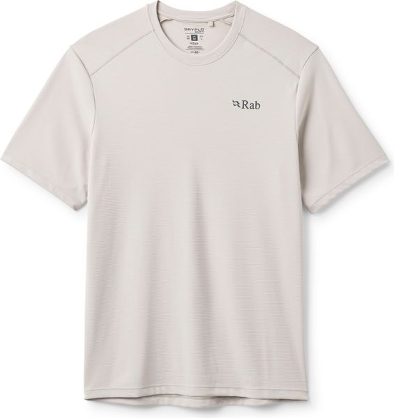 """The ""Force ""Stamp ""Tee ""from ""Rab ""is ""the ""ideal ""functional ""shirt ""for ""outdoor ""enthusiasts ""who ""value ""comfort ""and ""protection. ""Made ""from ""breathable ""Dryflou2122 ""Solar ""material, ""it ""offers ""excellent ""moisture ""transport ""and ""keeps ""you ""cool ""and ""dry ""even ""during ""strenuous ""activities. ""With ""a ""sun ""protection ""factor ""of ""UPF ""40+, ""it ""reliably ""protects ""you ""from ""harmful ""UV ""radiation, ""making ""it ""perfect ""for ""hiking, ""climbing ""or ""trekking ""adventures ""where ""you ""are ""often ""exposed ""to ""the ""sun."