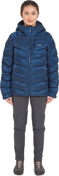 "The Glaceon Pro Jacket Wmns by Rab is the ideal choice for anyone who ventures into the mountains in the cold months. Whether you are mountaineering, climbing or hiking, this jacket offers optimum wind protection thanks to the lightweight and protective Pertexu00u00ae Quantum Pro fabric and remains reliable even when damp. The high-quality 700-cuin down filling ensures cozy warmth with minimal weight, so you can concentrate on the essentials: your adventure"