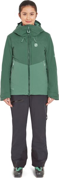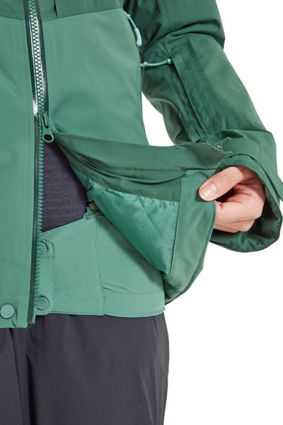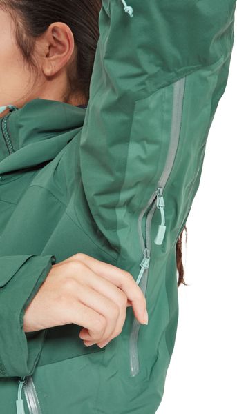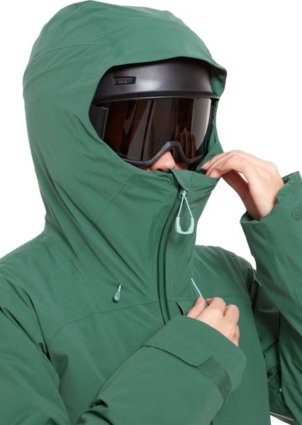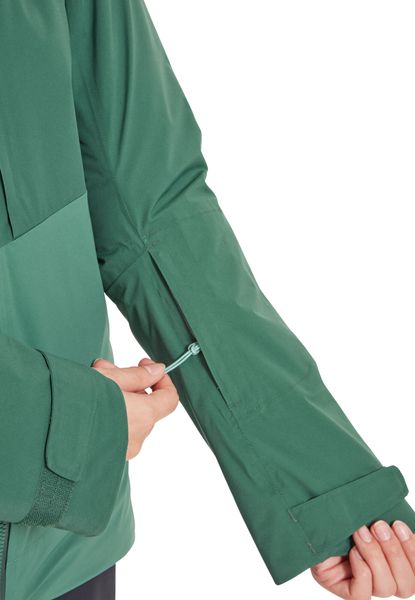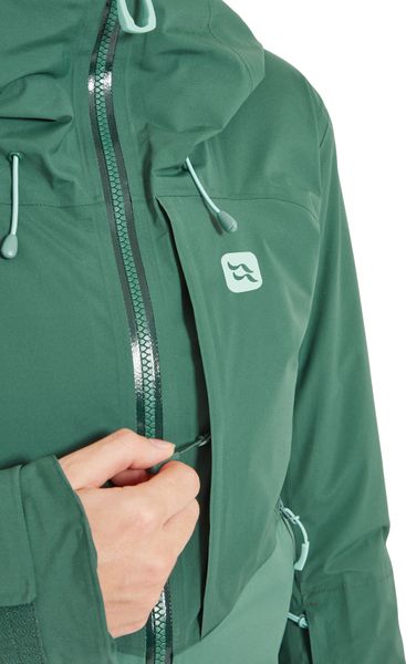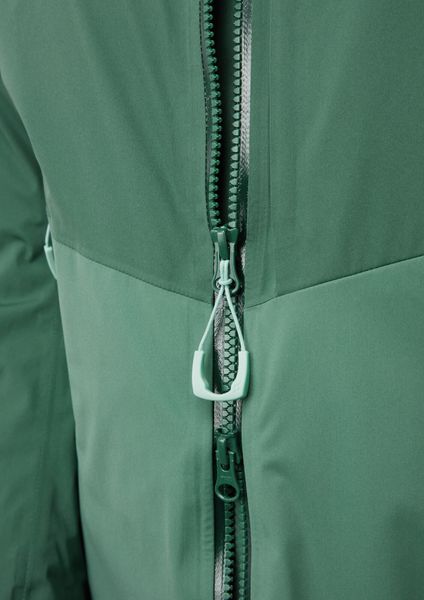 "The well thought-out design includes a helmet-compatible hood with triple adjustment, which offers protection even in snowstorms, as well as a removable snow skirt that prevents snow from penetrating. Additional ventilation is provided by the 2-wege-reiu00fcs under the armpits, which allow excess heat to escape quickly. With a wateru00e4ule of 20,000 mm and breathabilityu00e4t of 25,000 g/mu00b2/24 hrs., the jacket offers outstanding protection and comfort."