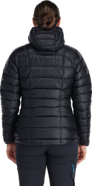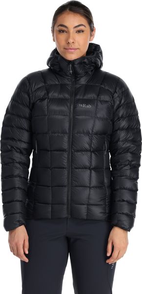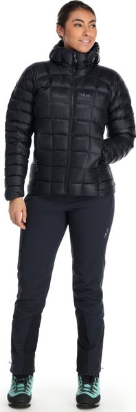 "The Mythic Alpine Jacket Wmns by Rab is the ideal companion for demanding outdoor activities such as climbing, mountaineering, skiing and long trekking tours. This jacket combines outstanding thermal insulation with minimal weight thanks to the high-quality European 900-cuin-Gu00e4nsedaune. The ultra-lightweight 10D Pertexu00u00ae Quantum fabric with ripstop pattern not only ensures weather resistance, but also a pleasant feel against the skin. The sophisticated construction with square chambers on the torso maximizes warmth, while the normal chamber construction on the sleeves guarantees unrestricted freedom of movement."