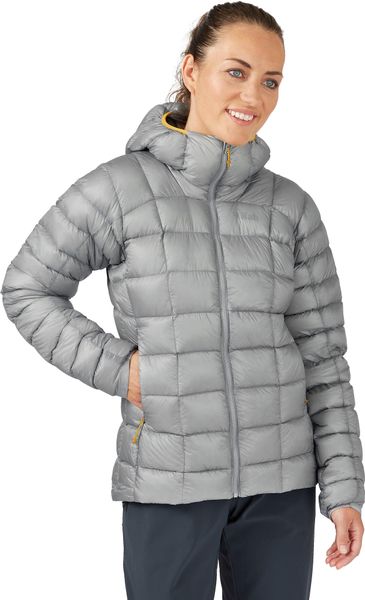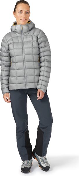 "The Mythic G Jacket Wmns by Rab is the ideal companion for anyone who likes to spend time in the mountains, whether climbing, mountaineering or skiing. This jacket offers maximum protection against the cold with minimum weight and volume. Thanks to its sophisticated construction and high-quality materials, such as the 7D Atmosu2122 nylon ripstop with fluorocarbon-free DWRcoating, it is both robust and environmentally friendly"