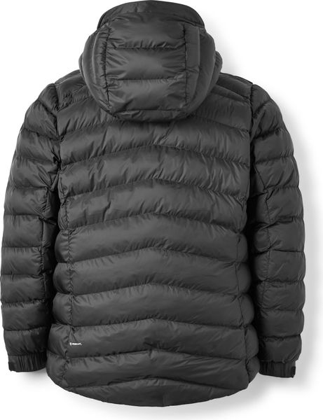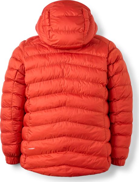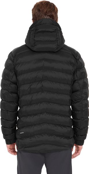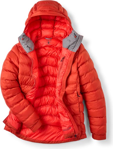 "Thanks to the adjustable, helmet-compatible hood with reinforced peak, the warmth stays inside the jacket, while the elasticated cuffs ensure an optimum fit. The practical 2-Wege-Reiu00u00dfastener allows the jacket to be worn with a climbing harness, and the jacket can be stowed away in the integrated pocket to save space and attached to the climbing harness. Two slit pockets with a concealed YKKu00ae-Reiu00dfastener and an inner pocket with a zipper provide plenty of storage space for your valuablesu00e4nde"