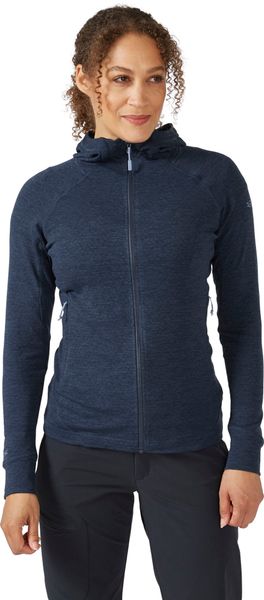 "The Nexus Hoody Wmns by Rab is the ideal choice for outdoorenthusiasts who value comfort and functionality. Whether hiking, mountaineering, climbing or on longer trekking tours, this hoody offers the perfect combination of warmth and freedom of movement. The innovative Thermicu2122 Gstretch fabric ensures that the temperature is optimally regulated while remaining quick-drying and breathable. This makes the hoody particularly suitable for intensive mountain activities where the weather can change quickly."
