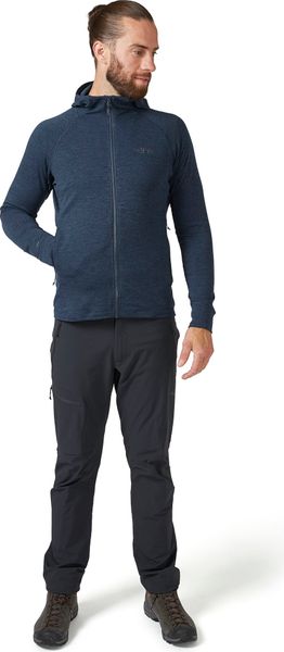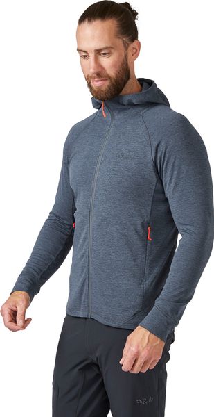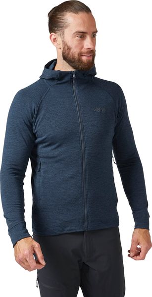 "The Nexus Hoody from Rab is the ideal choice for outdoor enthusiasts who don't want to compromise on comfort and functionality during their adventures. Whether hiking, mountaineering, climbing or on extended trekking tours, this garment is a reliable companion whether worn as a mid-layer or on its own. The innovative Thermicu2122 Gstretch fabric effectively regulates body temperature, dries quickly and is breathable. It offers unrestricted freedom of movement so that you can concentrate fully on your activities."